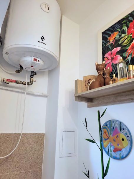The apartment underwent a complete renovation, including new floors, electrical, and plumbing systems. New doors were installed, and high ceilings visually expand the space and provide ample natural light. The balcony offers views of the quiet, green neighborhood. The apartment benefits from municipal heating, connected to the recently renovated building's system, as well as municipal water and sewage. Hot water comes from an electric boiler, which maintains the temperature for up to three days.