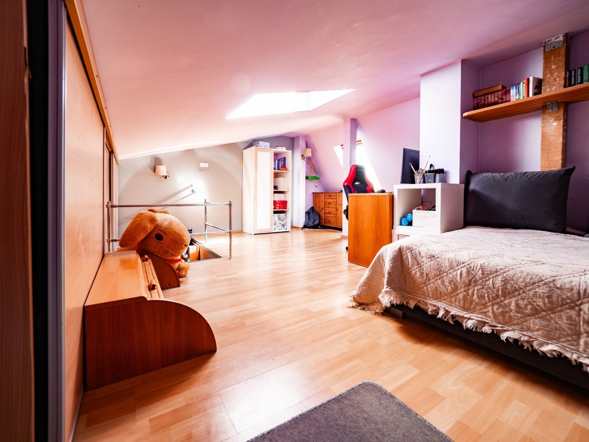 Strych został zaadaptowany na dodatkową sypialnię - nie jest on wliczony w metraż użytkowy. Co istotne - wg pierwotnych planów mieszkanie miało 3 pokoje na dole, więc istnieje możliwość wydzielenia jeszcze jednego pomieszczenia.