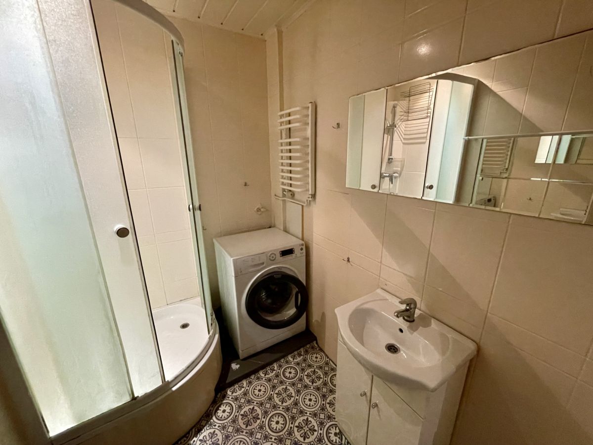 | Salon z aneksem kuchennym, Łazienka z prysznicem i WC |