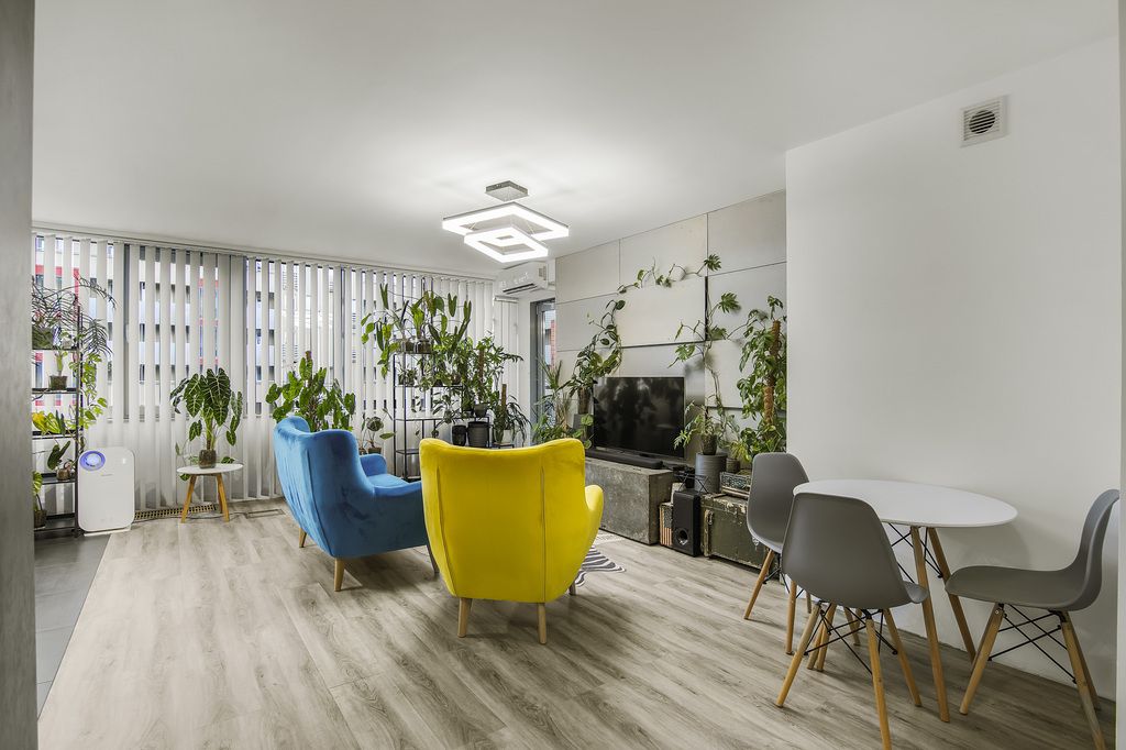 W mieszkaniu pionowe żaluzje – ale możesz je zamienić na zasłony, tworząc klimat dopasowany do stylu wnętrza.