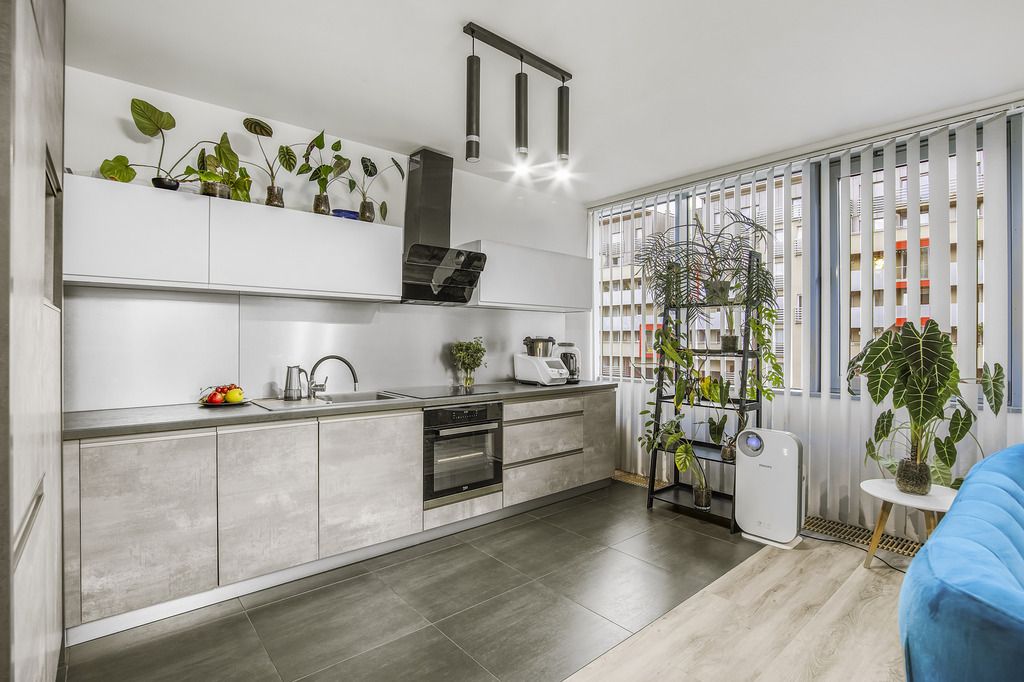 • Spacious living room with a huge showcase, connected to the kitchen, with the possibility of separating a second, separate kitchen – comfortable organization of space.