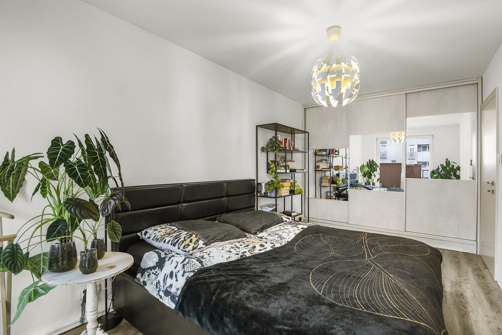 • Sypialnia z dużą wbudowaną szafą i miejscem na biurko lub toaletkę – idealna na sen i pracę.