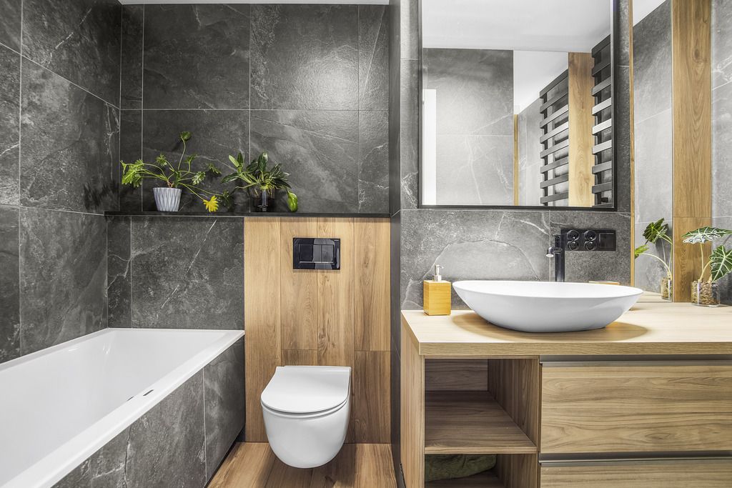 • Łazienka z wanną (z opcją prysznica) – nowoczesna i funkcjonalna.