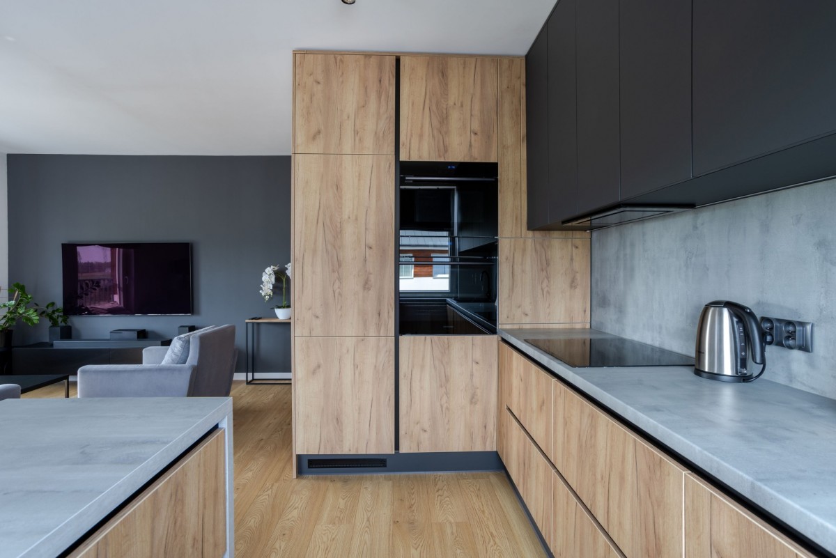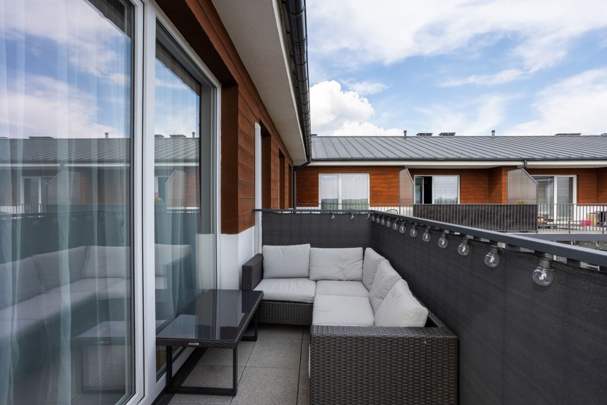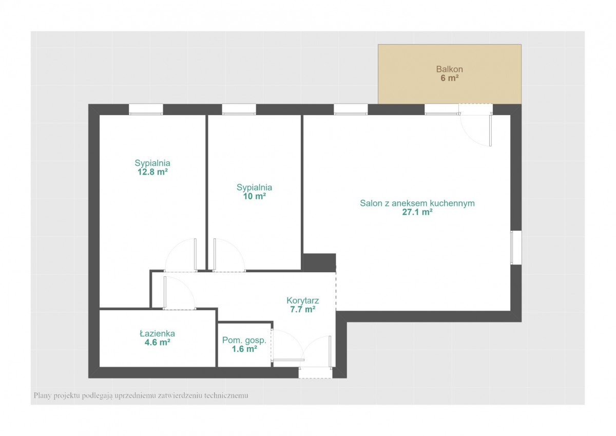 • salonu z aneksem kuchennym z wyjściem na balkon około 27.1 m2