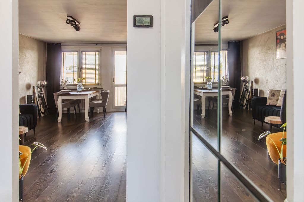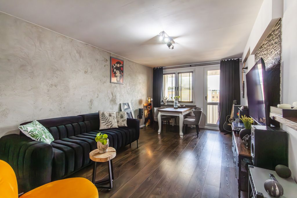 Mieszkanie o powierzchni blisko 50 m² zostało urządzone gustownie i z dbałością o detale. Jest wyjątkowo jasne i ciepłe.