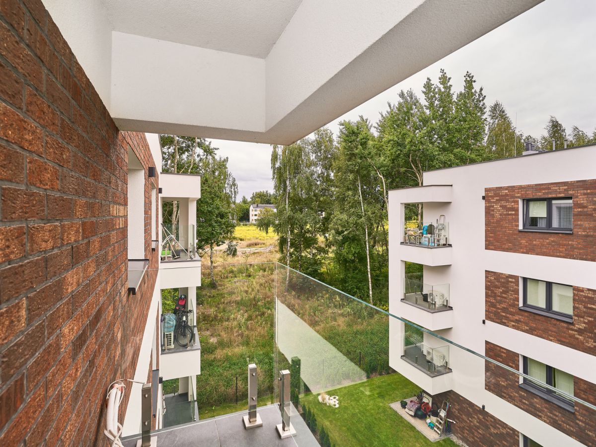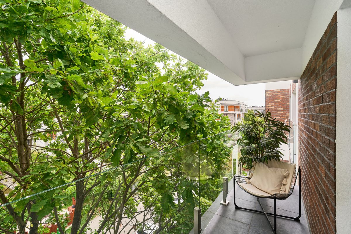Mieszkanie jest jasne, zapewnia intymność i dużo zieleni. Ogromny balkon bez okien na sąsiadów, za to z pięknym drzewem zapewniającym miłą atmosferę w letnie dni.
