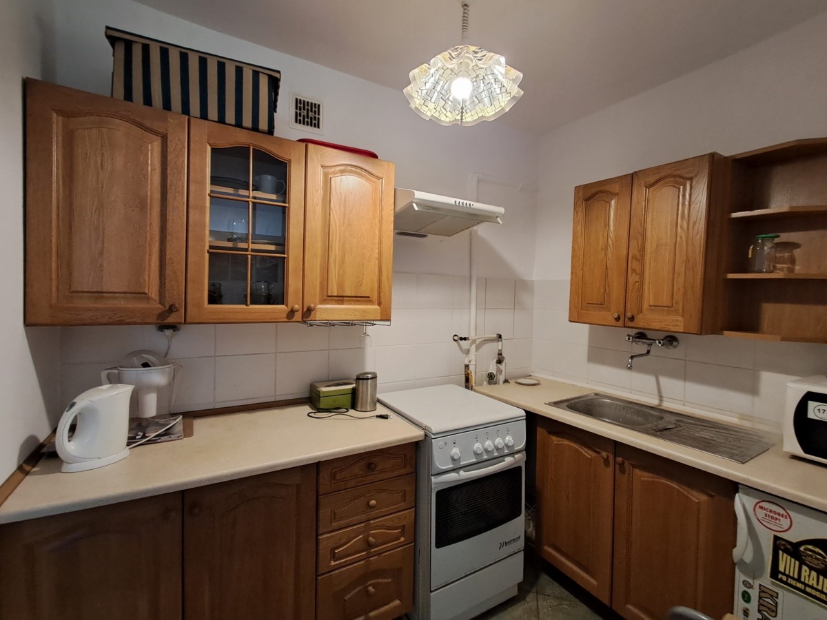 O nieruchomości: Mam przyjemność zaprezentować Państwu nieruchomość do wynajęcia przy ul. Spółdzielców. Mieszkanie o powierzchni 36,32 m2 składa się z 2 niezależnych pokoi, oddzielnej kuchni, łazienki z WC i przedpokoju. Usytuowane jest na 4 piętrze w bloku z windą. Kuchnia jest wyposażona w meble kuchenne, lodówkę, kuchenkę, piekarnik, mikrofalówkę oraz niezbędne naczynia. W skład pierwszego pokoju wchodzą kanapa, kredens, stół z krzesłami i biurko, a w drugim znajdują się szafa, kanapa i meblościanka. Klimatyczne umeblowanie pokoi zaskoczy niejednego miłośnika stylu vintage.