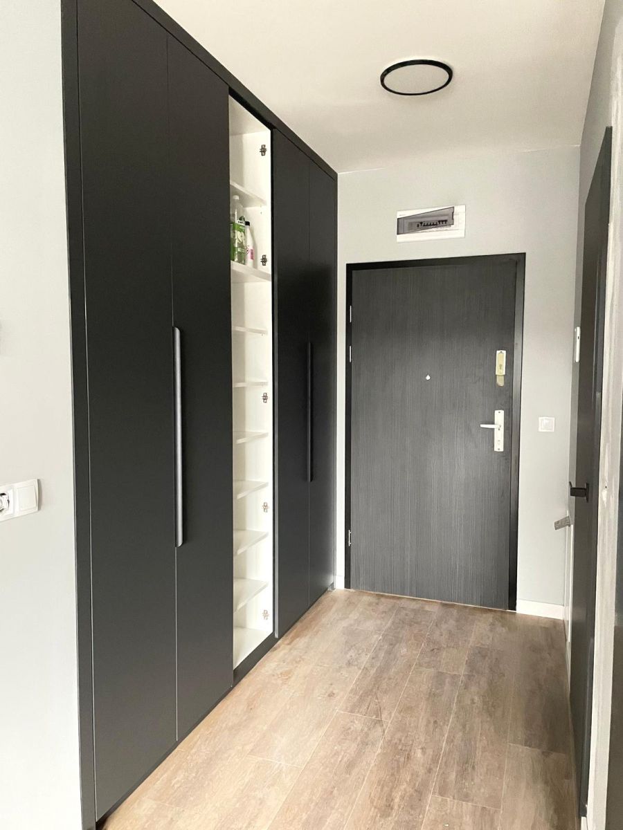 - przedpokoju: duża szafa z półkami, półkami na buty, wieszakami.