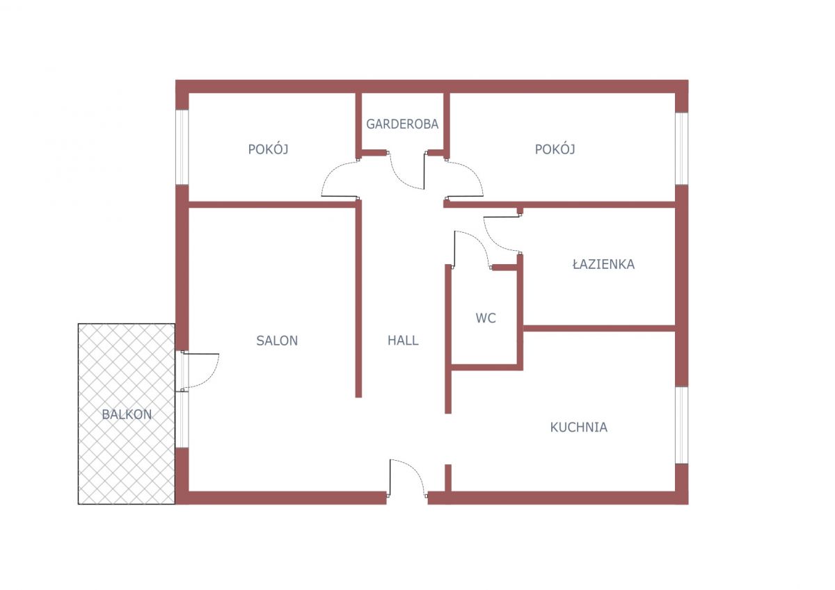 Mieszkanie ma powierzchnię 77m2, na którą składa się: