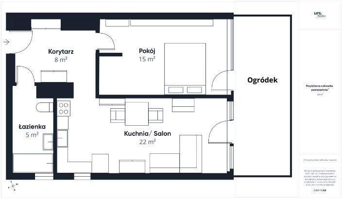 Przedstawione ogłoszenie ma charakter wyłącznie informacyjny i nie stanowi oferty w rozumieniu art. 66 par. 1 Kodeksu cywilnego. Biuro Nieruchomości dokłada starań, aby treść ogłoszeń była rzetelna i aktualna, jednak nie ponosi odpowiedzialności za ewentualne nieścisłości, błędy lub nieaktualność ogłoszenia.A 2-room apartment for rent is located in a modern, gated community on Sosnowiecka Street in the Bronowice district. The apartment is located on the ground floor and includes a private garden, which is directly accessible from the living room. It is ideal for a couple or young family seeking a quieter location while still having access to all services and amenities.