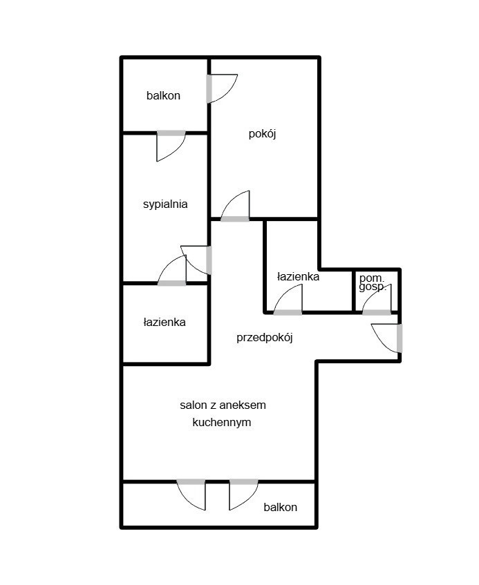 Do mieszkania przynależą dwa balkony. Jeden wychodzi z salonu, drugi połączony jest z sypialnią oraz pokojem.