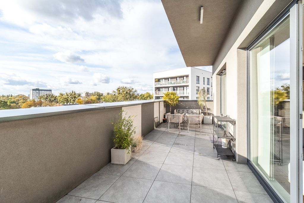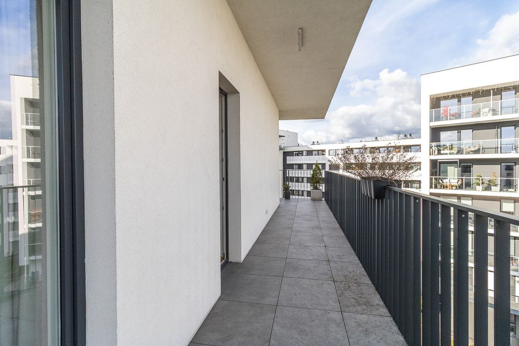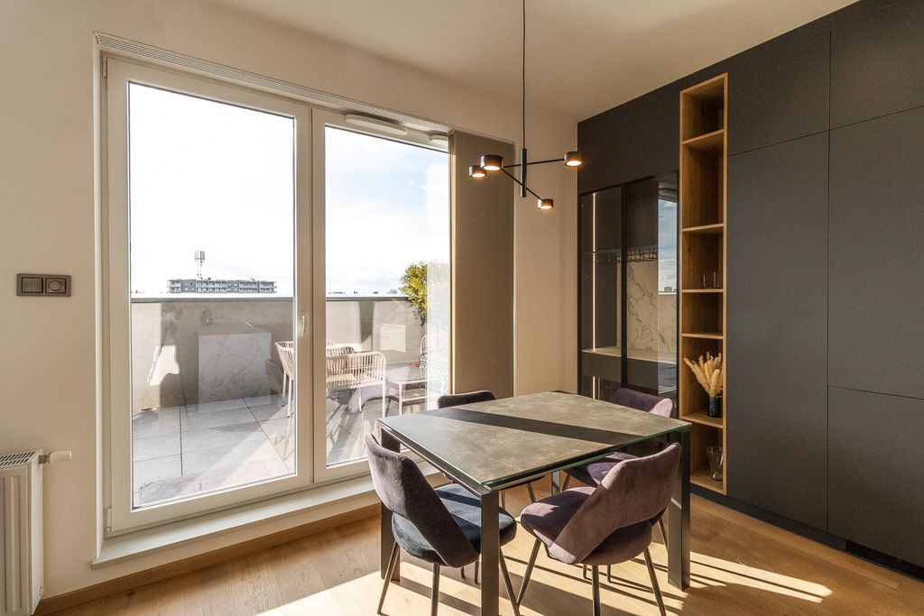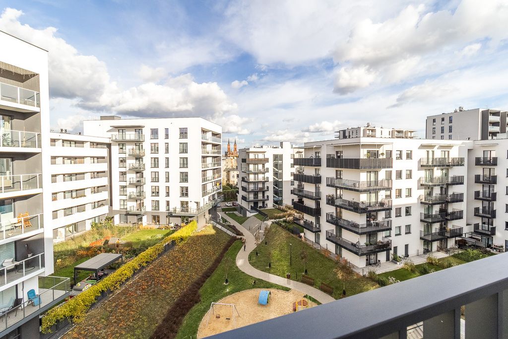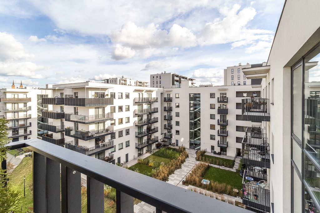 Z mieszkania rozpościera się widok na inne budynki oraz panoramę miasta, co sprawia, że codzienne życie staje się przyjemnością.