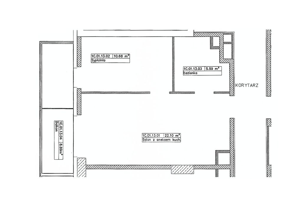 Mieszkanie typu amfilada składa się z dwóch pokoi: salonu o powierzchni 22,10 m² oraz pokoju 10,68 m². Okna wychodzą na południowy wschód, dzięki czemu wnętrza są jasne i słoneczne. Wysokość pomieszczeń to 260 cm, a podłogi wykończono panelami i płytkami, co zapewnia estetykę i łatwość utrzymania czystości.