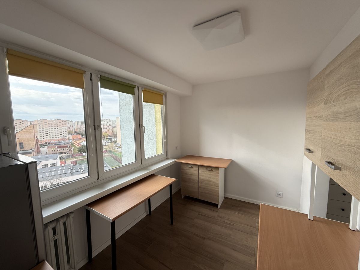 Oferujemy do wynajęcia przestronną kawalerkę z balkonem o powierzchni 35,15m2 z pięknym widokiem na panoramę miasta mieszczącą się na 9 piętrze w wieżowcu z windą na osiedlu Widzew Wschód. Mieszkanie po generalnym remoncie, składa się z pokoju z kuchnią, przedpokoju oraz łazienki. Kuchnia i część salonu są umeblowane (zdjęcia przed umeblowaniem). Jest też możliwość doposażenia dodatkowych mebli przez Wynajmującego.