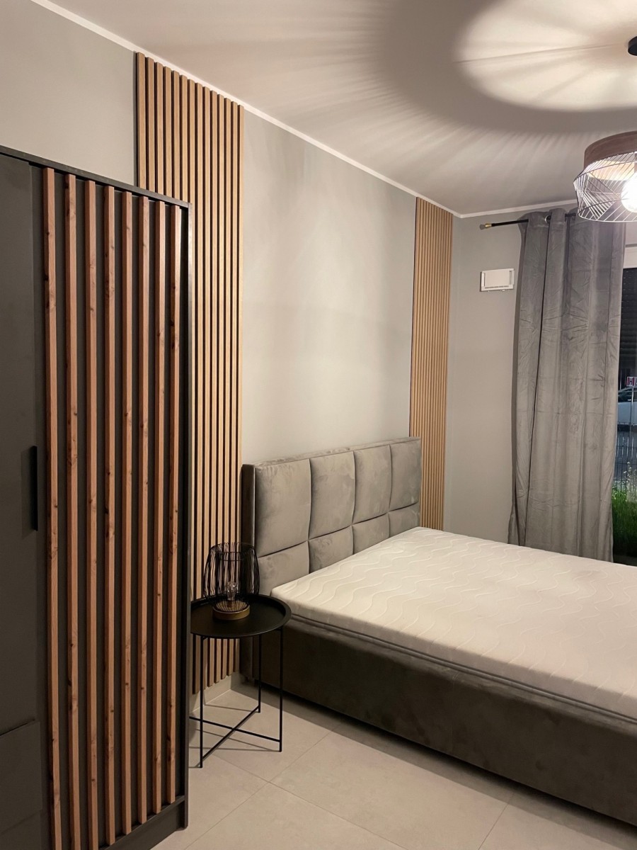 - Kompletne wyposażenie mebli (sypialnia: łóżko, szafa; salon: stół, krzesła, sofa, szafka pod TV)