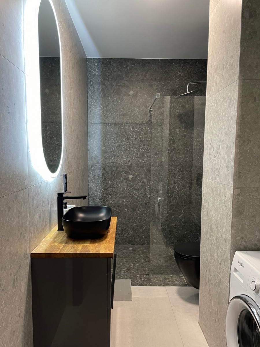 - Mieszkanie wyposażone w pralkę, lodówkę, piekarnik, płytę indukcyjną, mikrofalę i zmywarkę.