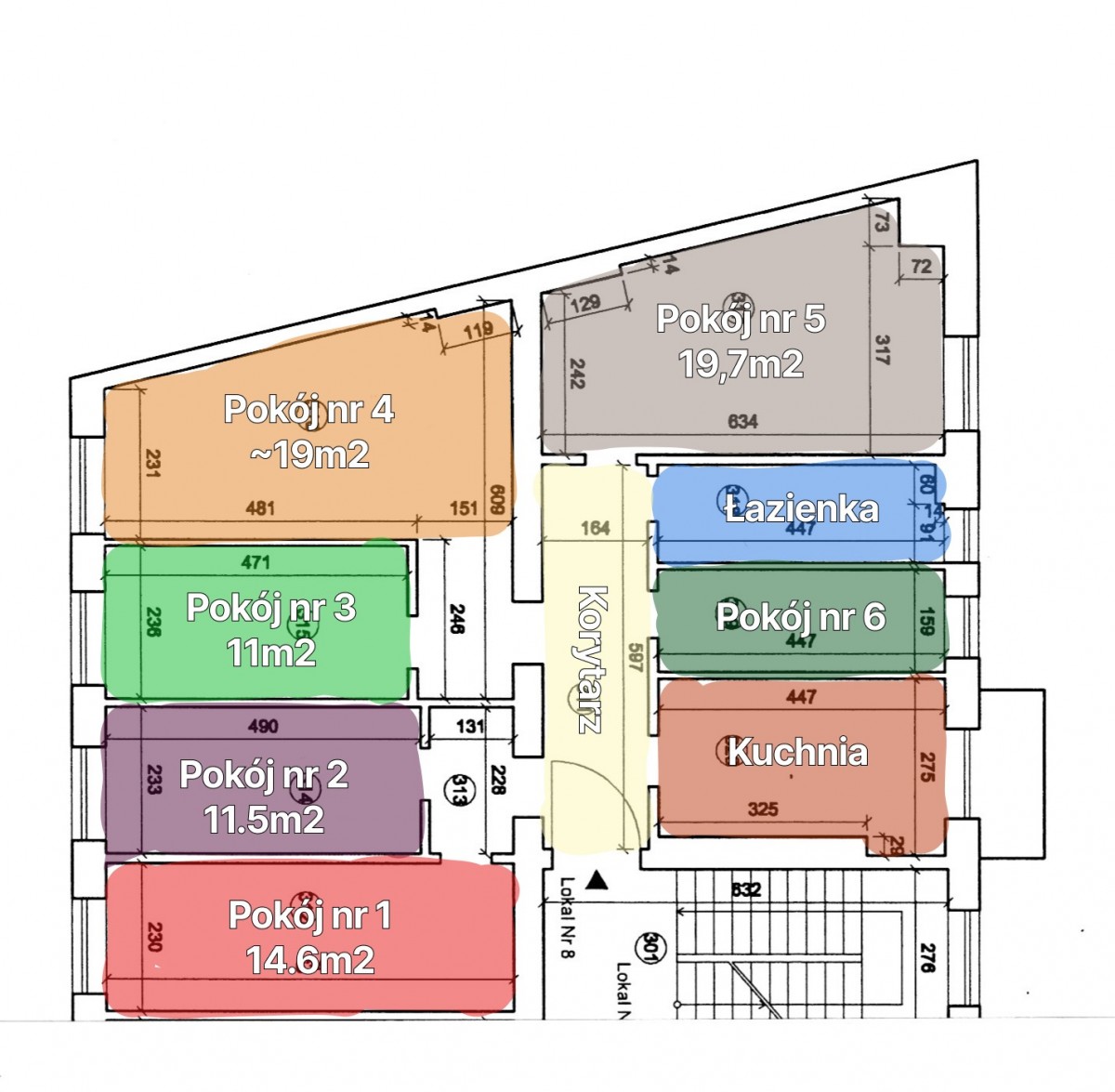 • 6 oddzielnych, jasnych pokoi