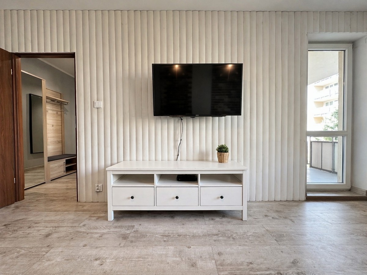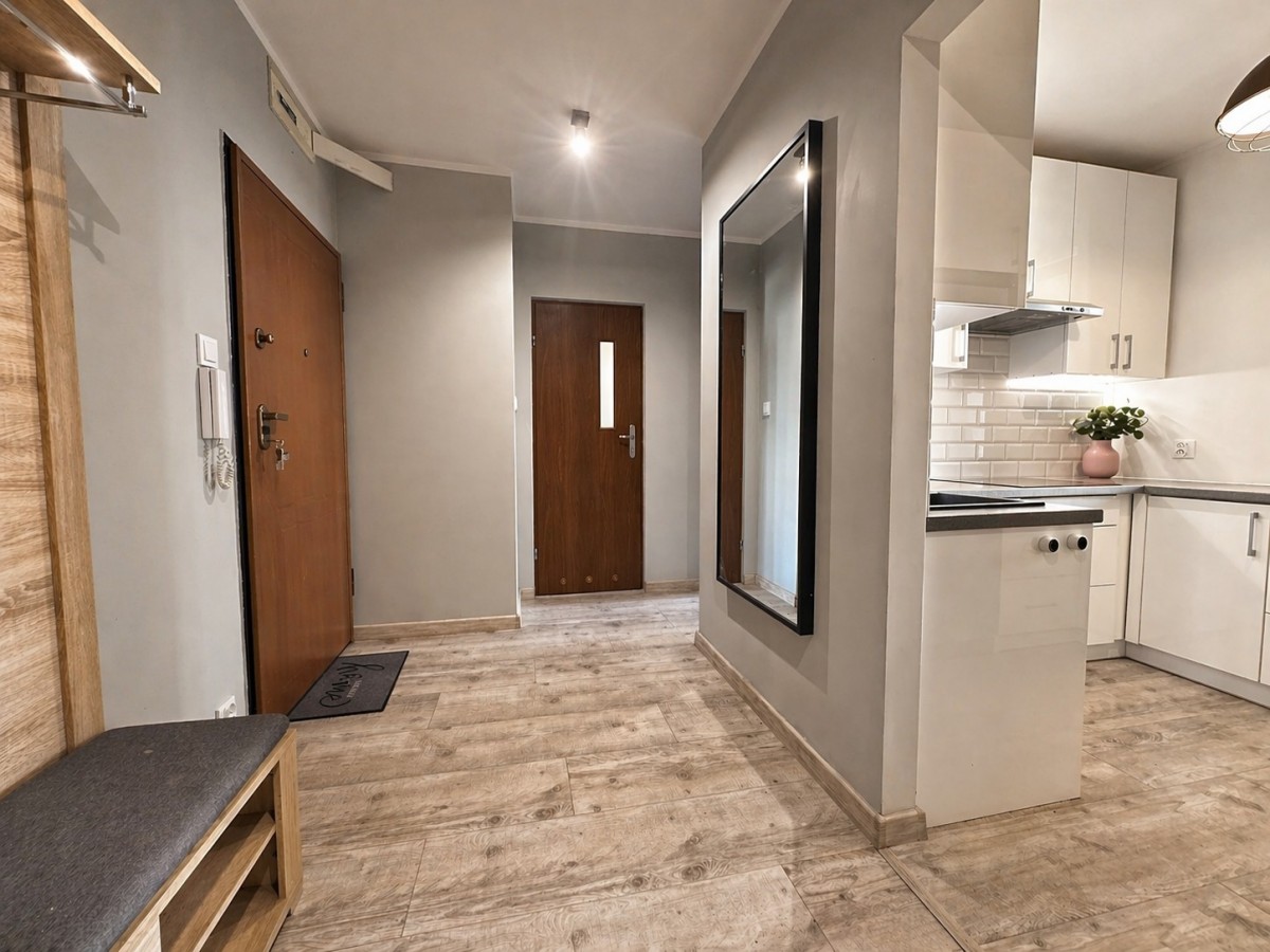 Przestronne, dobrze wyposażone, dwupokojowe mieszkanie położone przy ulicy Katowickiej w Poznaniu. Mieszkanie położone na pierwszym piętrze w czteropiętrowym, nowoczesnym budynku mieszkalnym z windą, wybudowanym w 2005 roku.