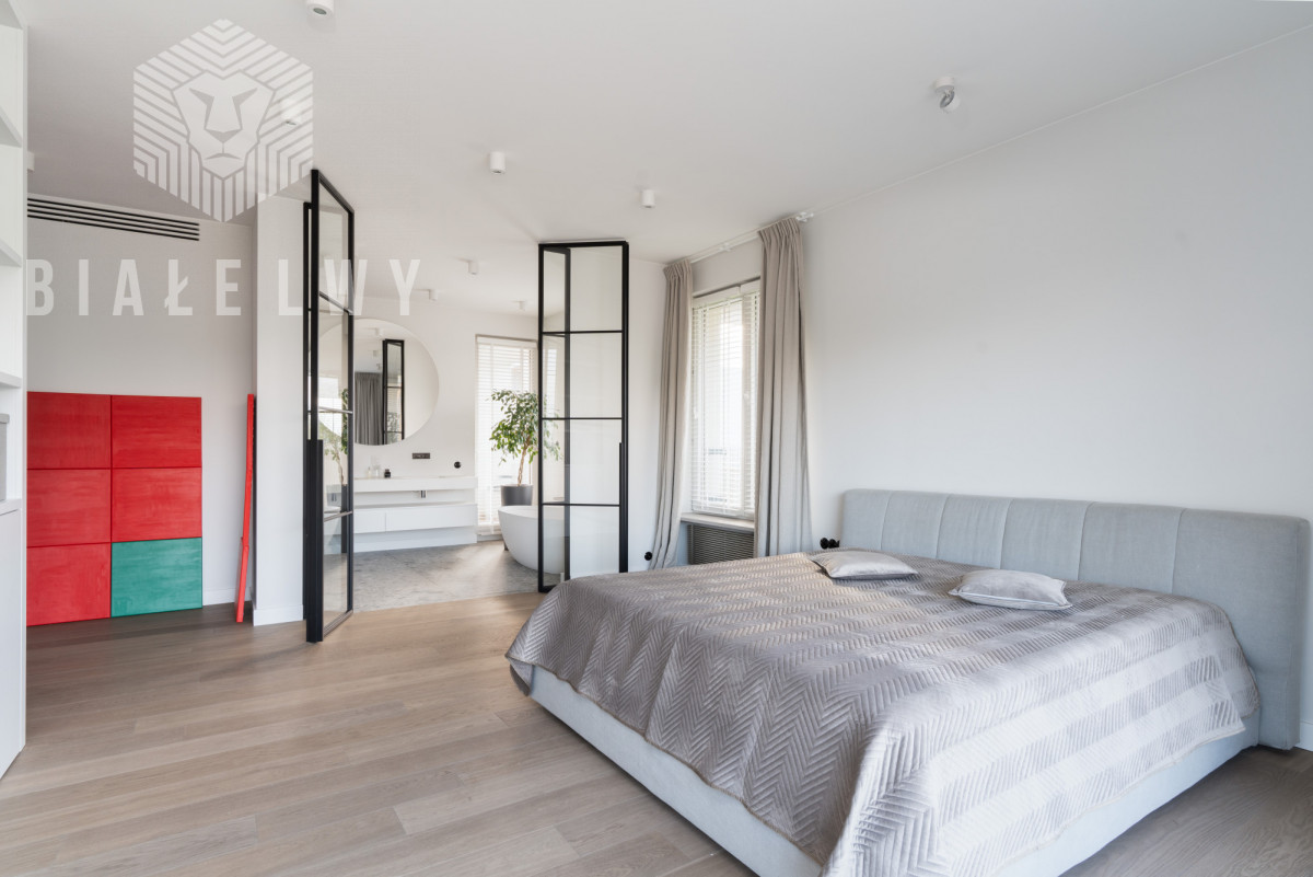 Sypialnia o powierzchni 31 m2 ma własną łazienkę o powierzchni 6,60 m2 z oknem i loggią o powierzchni 2,15 m2. W przestronnej, widnej łazience są toaleta, prysznic i wanna. Z sypialni jest wyjście na ustawny balkon o powierzchni 6,31 m2