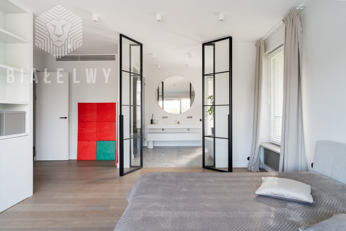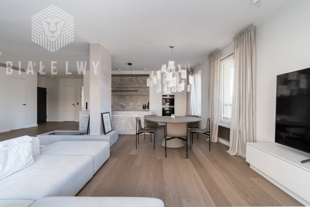 U rayoni Mokotov na vulytsi Eukaliptusova znakhodytʹsya elehantna, stylʹna kvartyra ploshcheyu 147 m² z trʹoma balkonamy.