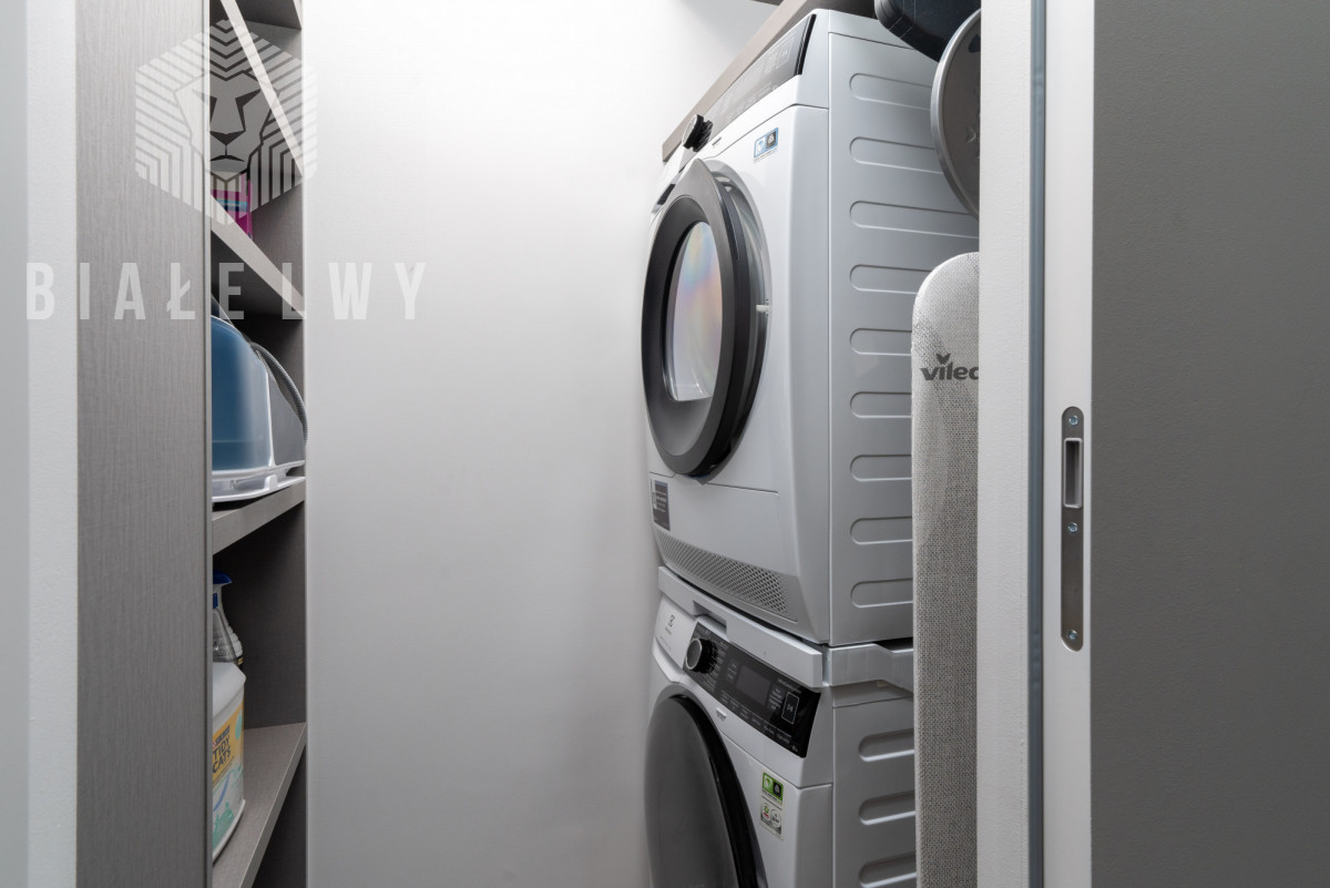 - Przy hallu wejściowym jest podręczna garderoba, pomieszczenie gospodarcze z pralką oraz z suszarką, a także oddzielna toaleta dla gości.