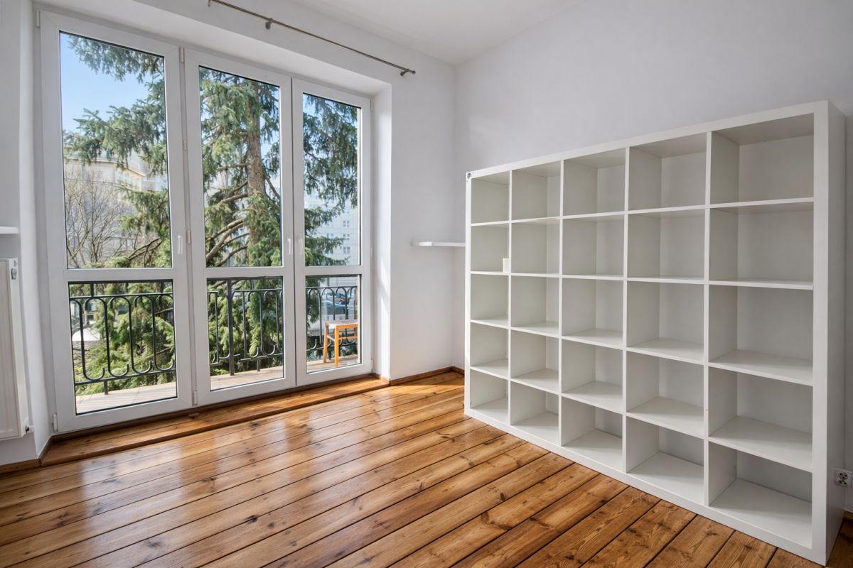 - Mieszkanie częściowo umeblowane: nowe szafy, pojemne regały, stół i 4 krzesła