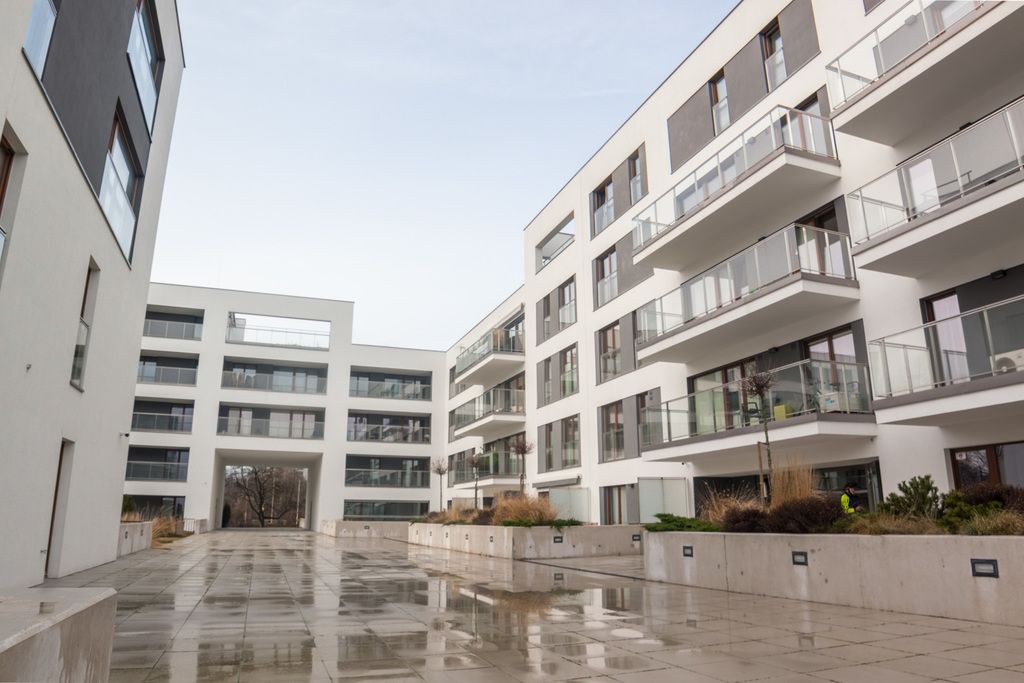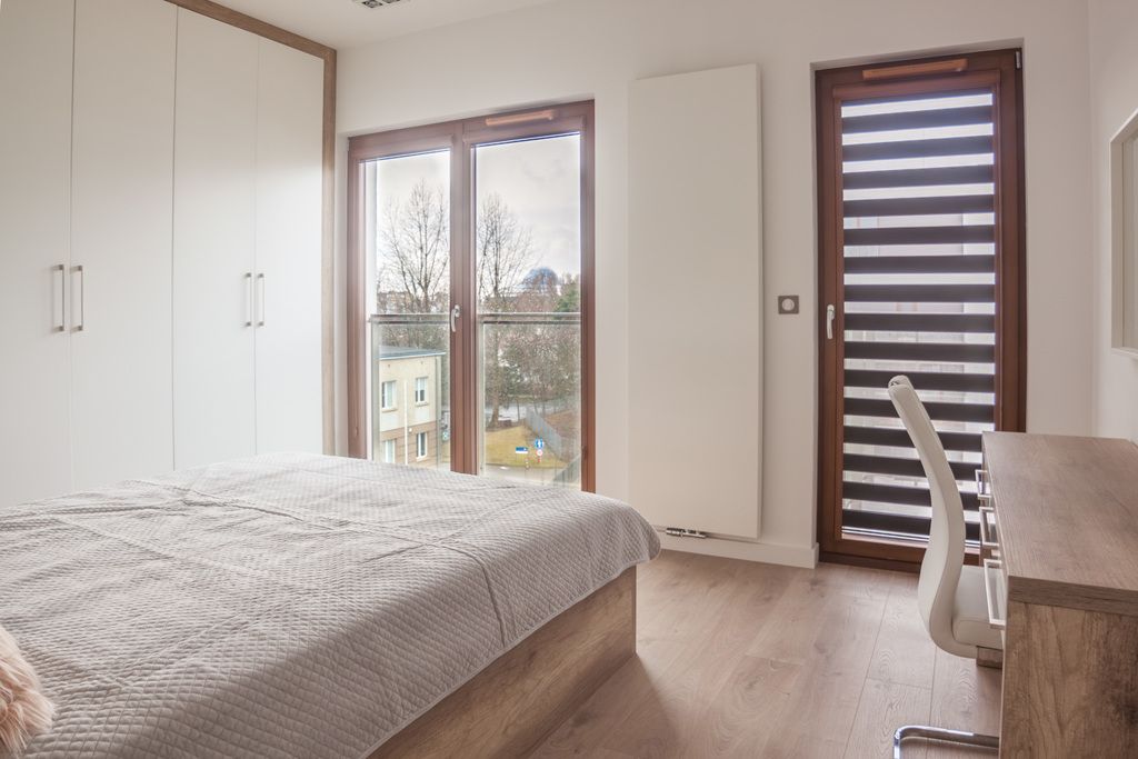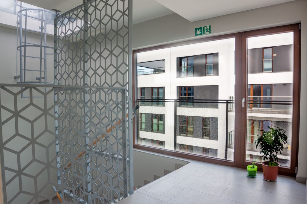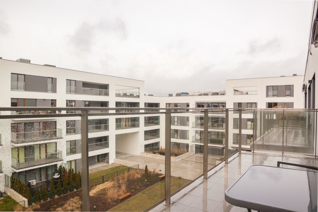 A cozy, gated community located near Szczęśliwicki Park. The apartment's windows face the quiet, interior side.