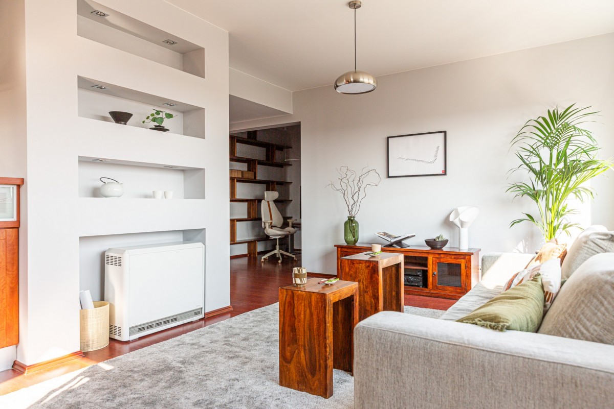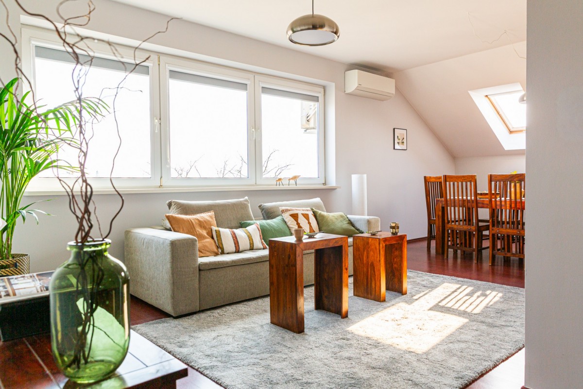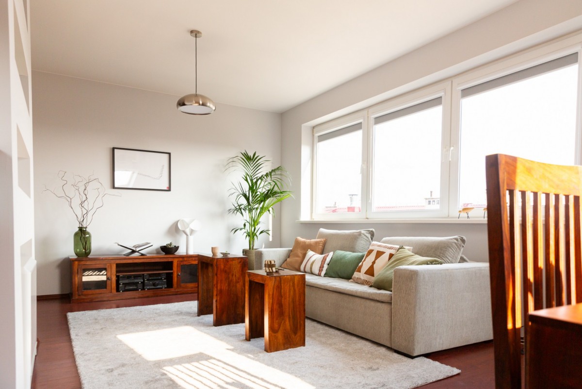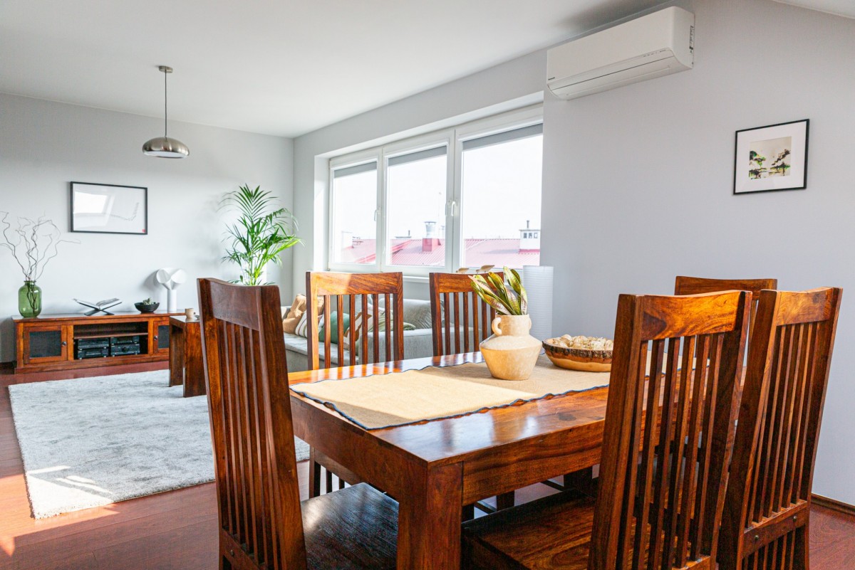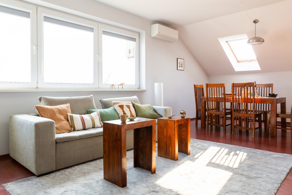 Salon z dużym oknem, klimatyzowany: