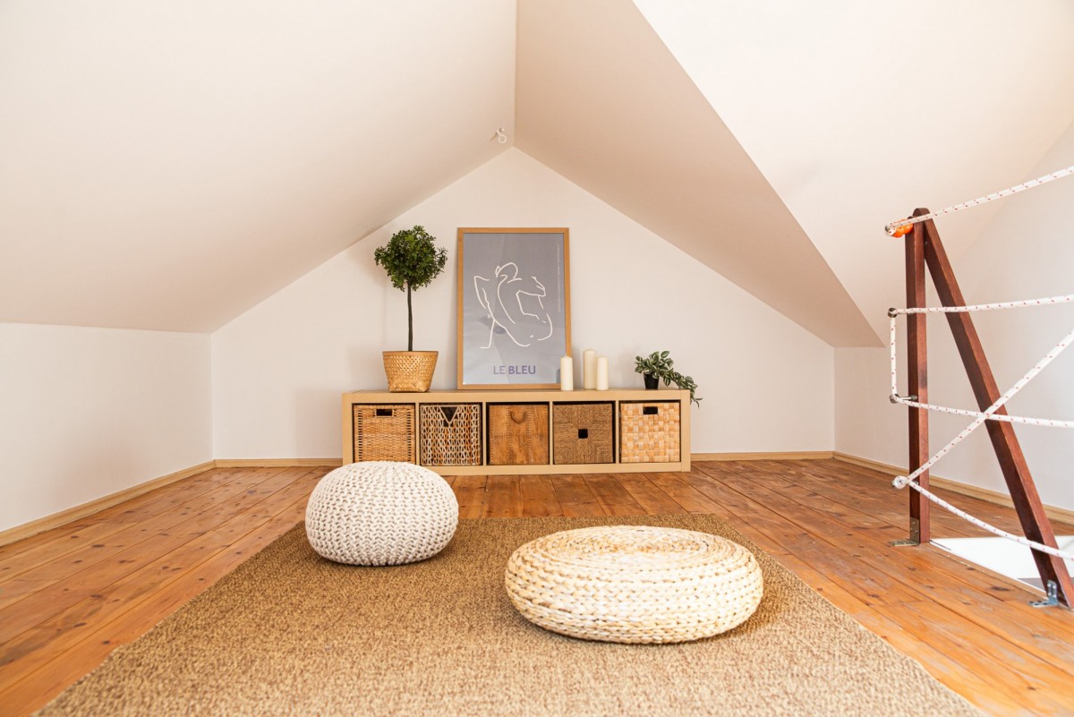 Zamykany poziomymi drzwiami pokój na 2 poziomie ze skosami,