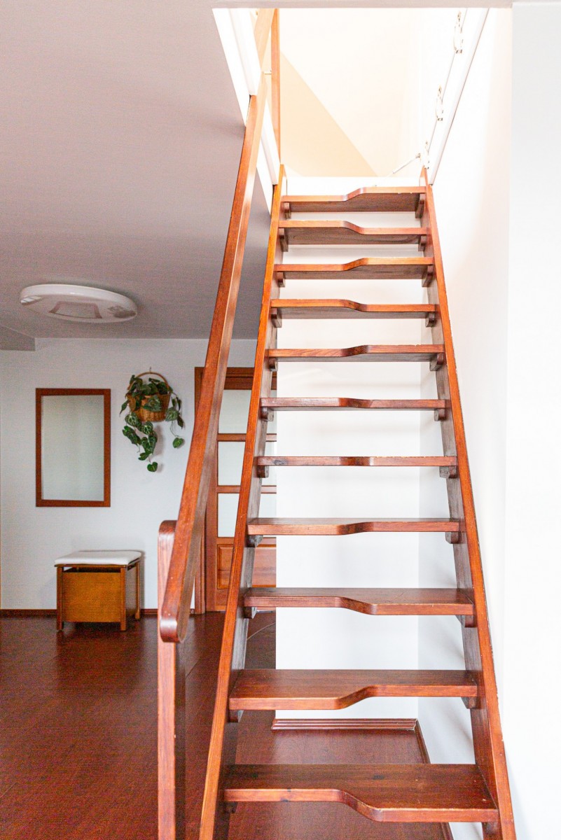 *stałe drewniane schody na 2 poziom