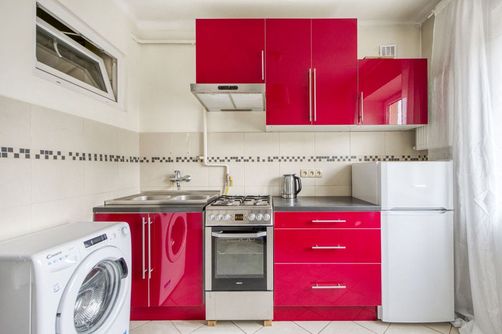 Kuchnia oddzielna 8m, widna, umeblowana, wyposażona - lodówka, kuchenka z piekarnikiem, pralka, stół, krzesła;