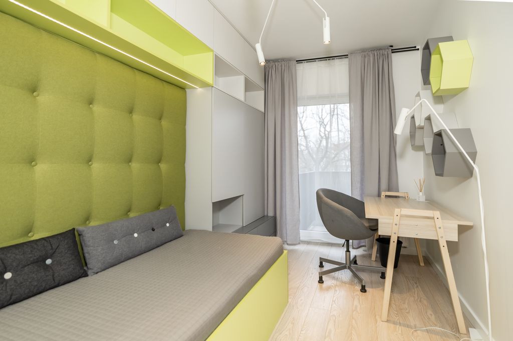 - sypialnia - zabudowane szafy i bardzo dużo miejsca do przechowywania, łózko z pojemnikiem