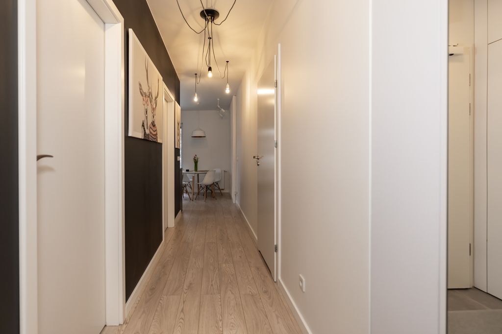 - przedpokoju z zabudowanymi szafami