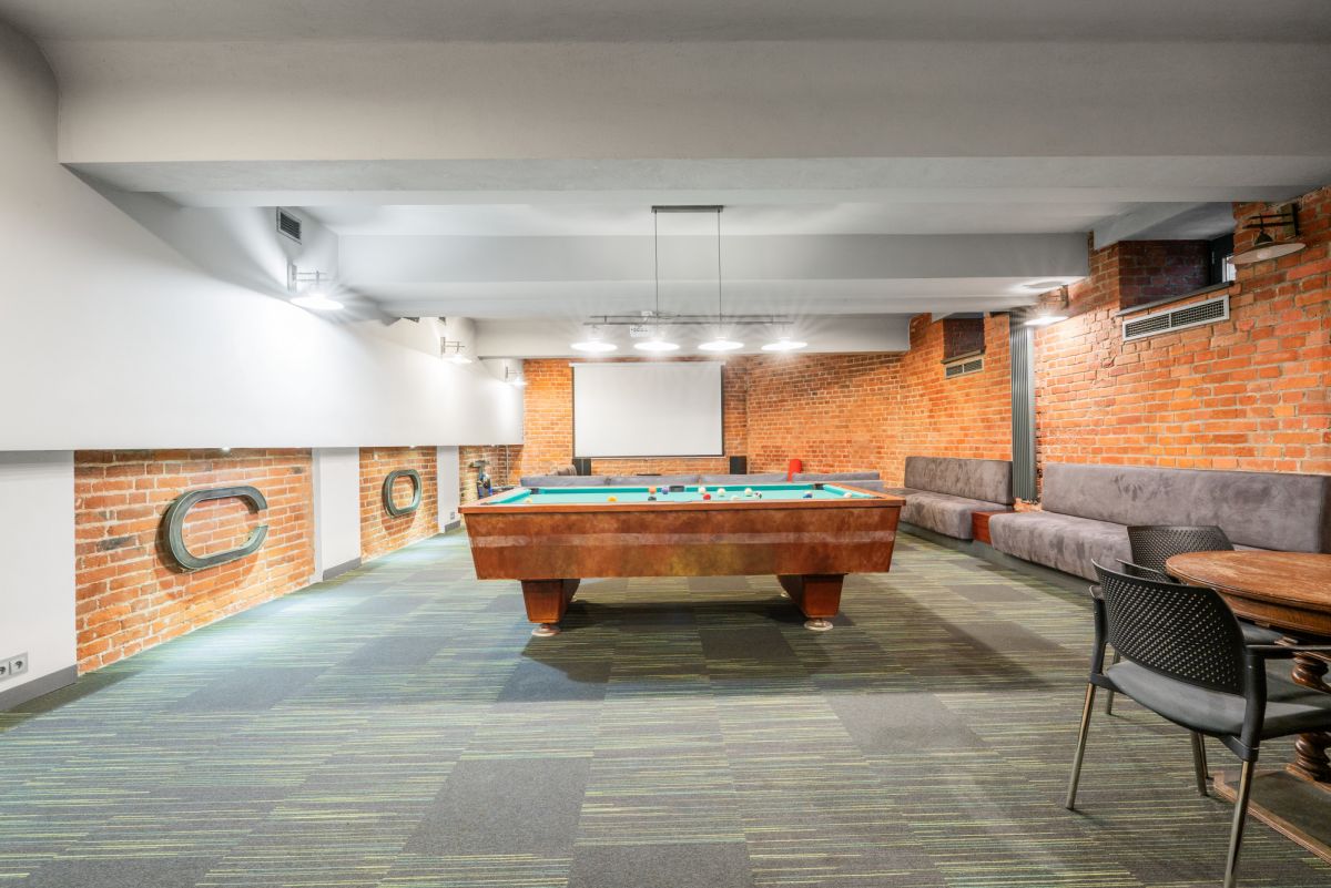 Klub mieszkańca z bilardem, projektorem i konsolą