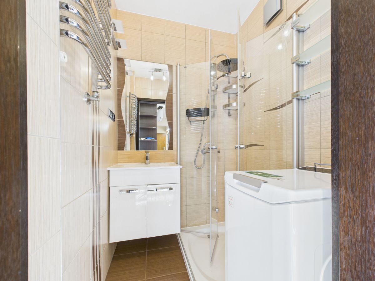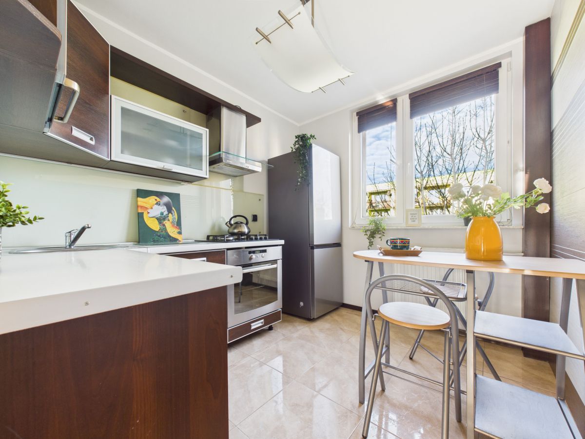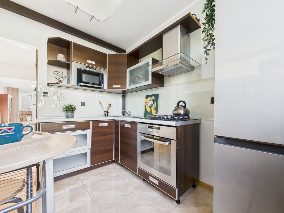 - w pełni wyposażonej kuchni z nową lodówką, piekarnikiem, mikrofalą, zmywarką