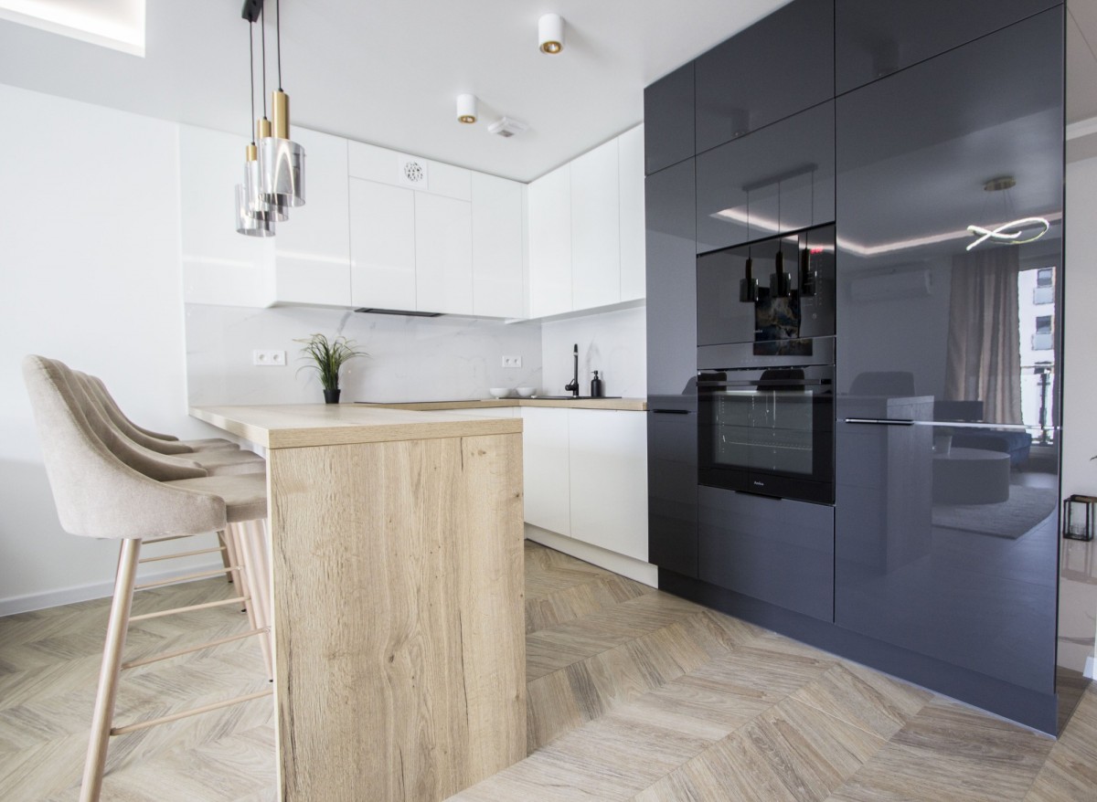 - Kuchnia wyposażona w wszystkie niezbędne sprzęty: szafki, zlew, lodówka, płyta grzewcza, piekarnik, zmywarka, okap.
