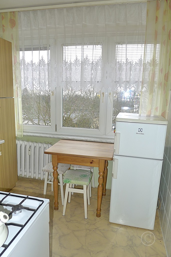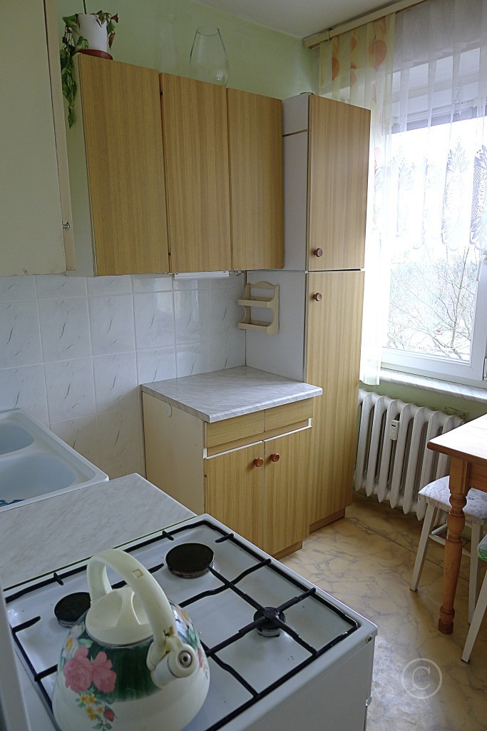 Mieszkanie położone na trzecim piętrze czteropiętrowego bloku, po termomodernizacji. Umeblowane. Na podłodze w pokojach - parkiet. W kuchni, łazience, przedpokoju i WC wykładzina PCV. Na ścianach w kuchni, łazience i WC - glazura. W pokojach gładź gipsowa, pomalowana.