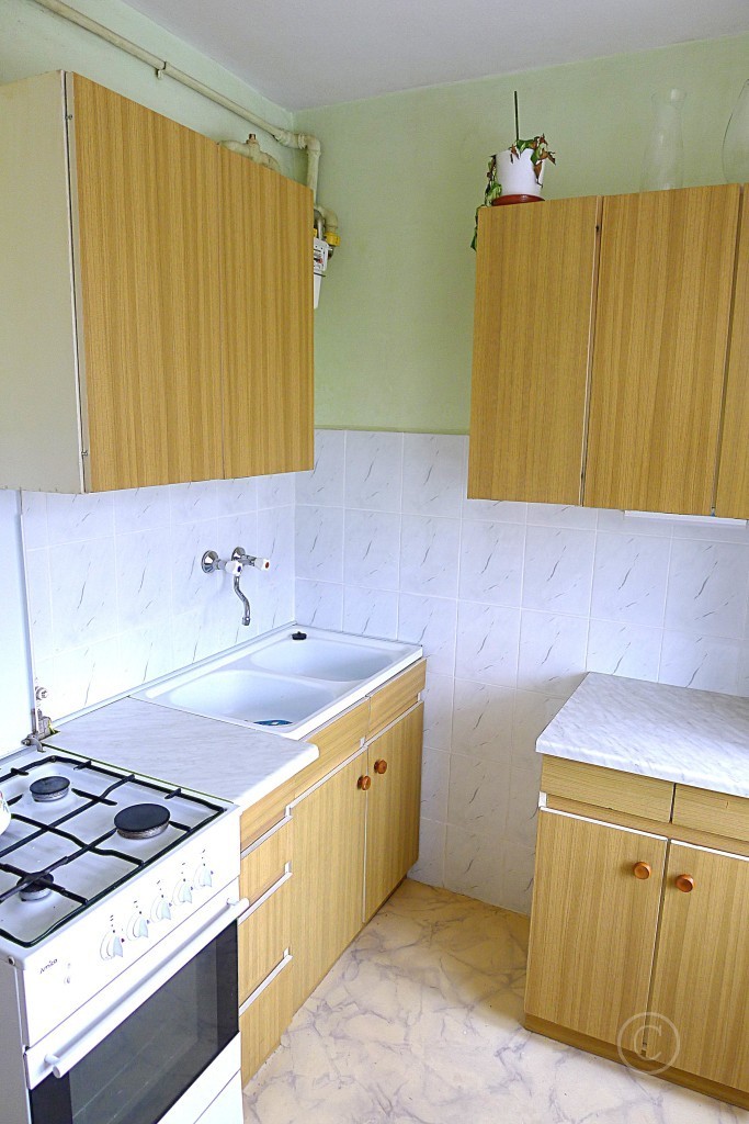 W dużym pokoju: kanapa, ława, 2 fotele, szafka pod telewizor, meblościanka, dywan. Balkon- mały, typu koszyk. W małym pokoju: wersalka, komoda, krzesło. W kuchni: lodówka, kuchenka gazowa z piekarnikiem, zlew, meble kuchenne, stół.