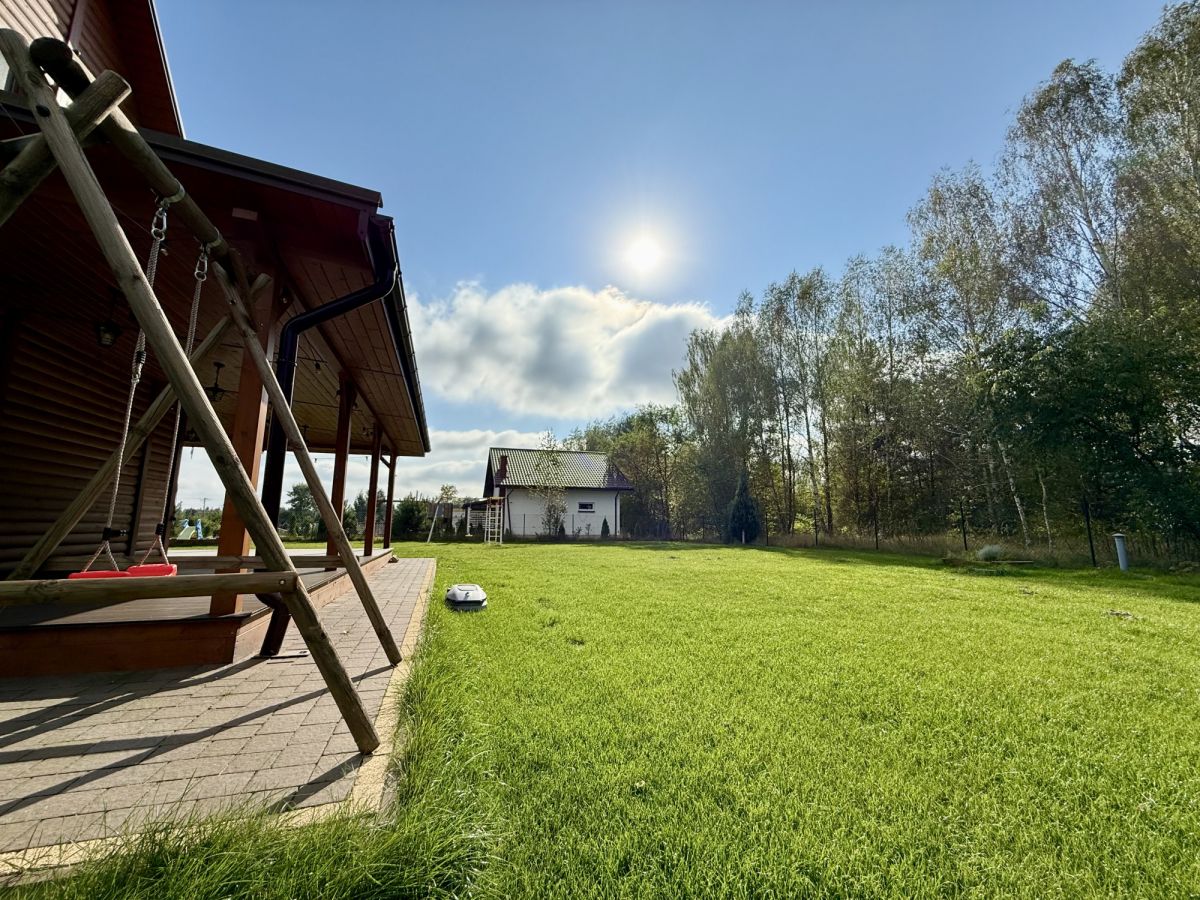 - Nowoczesność i funkcjonalność - dom z 2022 roku, zbudowany w technologii szkieletowej na płycie fundamentowej, ocieplony i wykończony półbalem. Przemyślany układ pomieszczeń - 3 sypialnie, 2 łazienki, przestronny salon z kominkiem i w pełni wyposażona kuchnia.