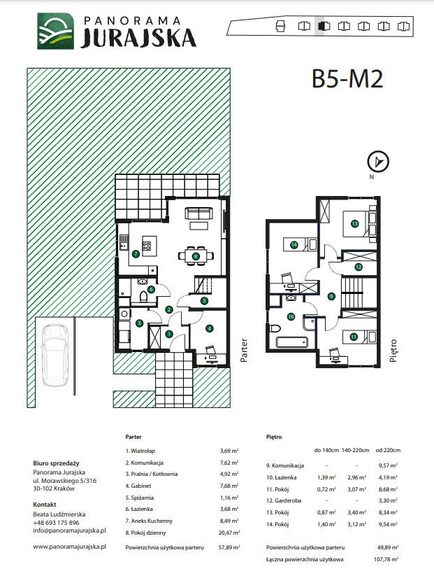 - na parterze: przestronny salon z aneksem kuchennym, gabinet, łazienka oraz kotłownią/pralnią.