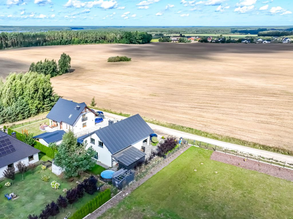 Na sprzedaż oferujemy nowy dom jednorodzinny o powierzchni użytkowej 201,44 m² (powierzchnia całkowita 286,22 m²), wybudowany z wysokiej jakości materiałów, zlokalizowany w Chojniczkach, zaledwie 2,5 km od plaży w Charzykowach – jednej z najbardziej malowniczych i cenionych miejscowości wypoczynkowych na Pomorzu.