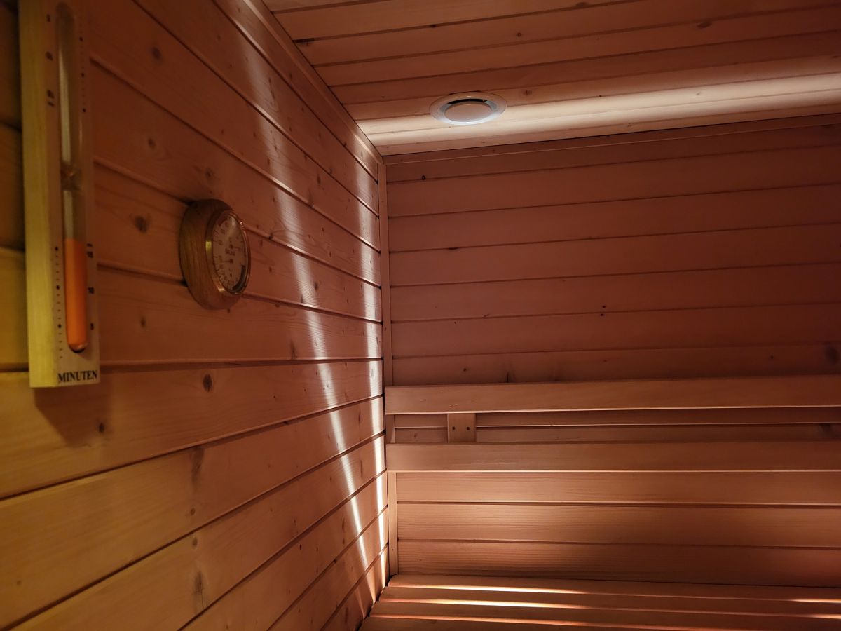 Dom posiada: 3 sypialnie, salon, jadalnię, kuchnię, taras, saunę, kotłownię, pralnię oraz duży garaż na dwa samochody i miejsce na stół warsztatowy i miejsce na narzędzia.