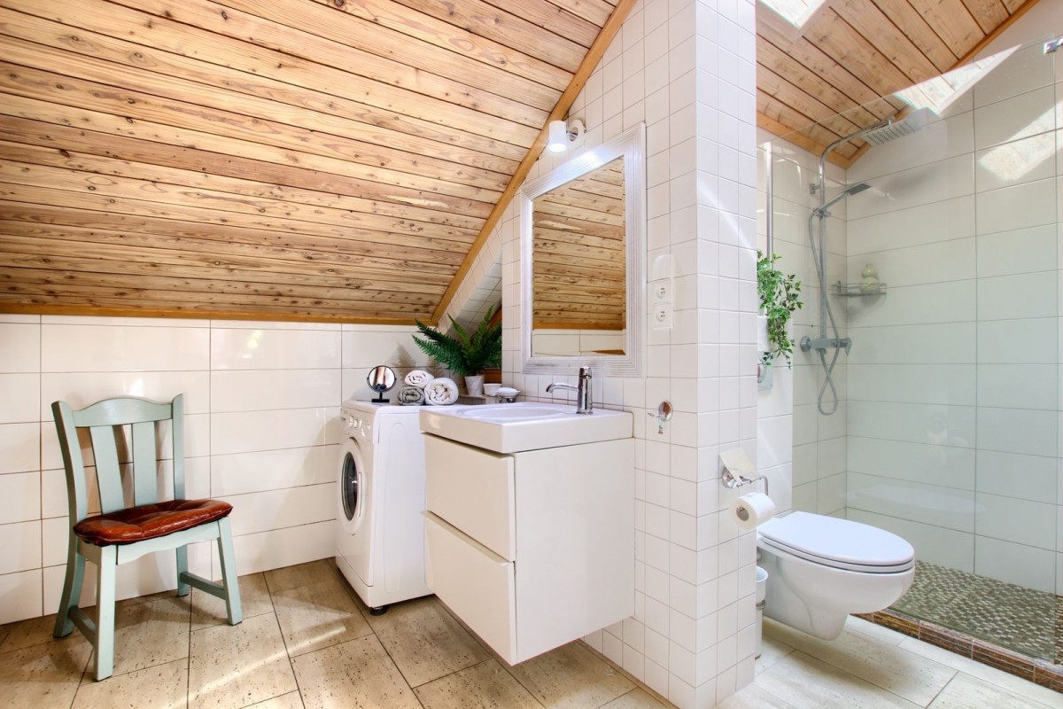 Głównym źródłem ogrzewania jest pompa ciepła, na dachu zostały zainstalowane panele fotowoltaiczne.