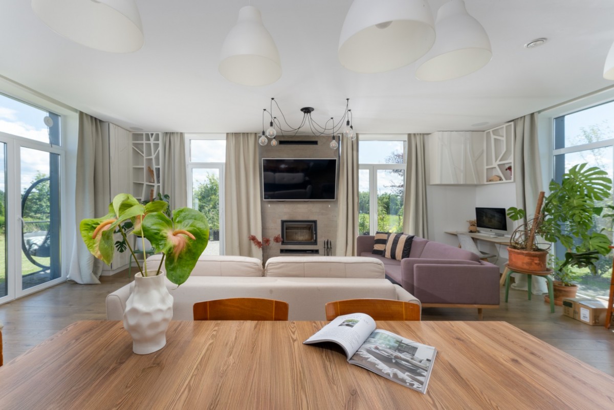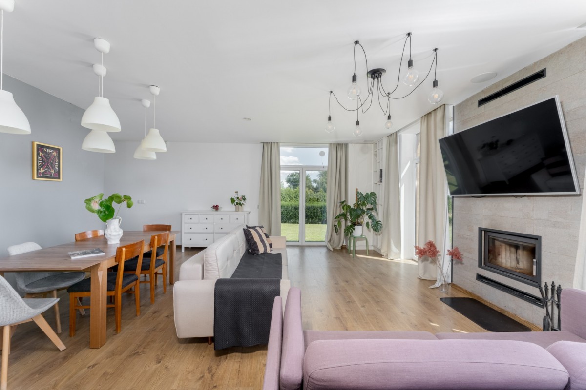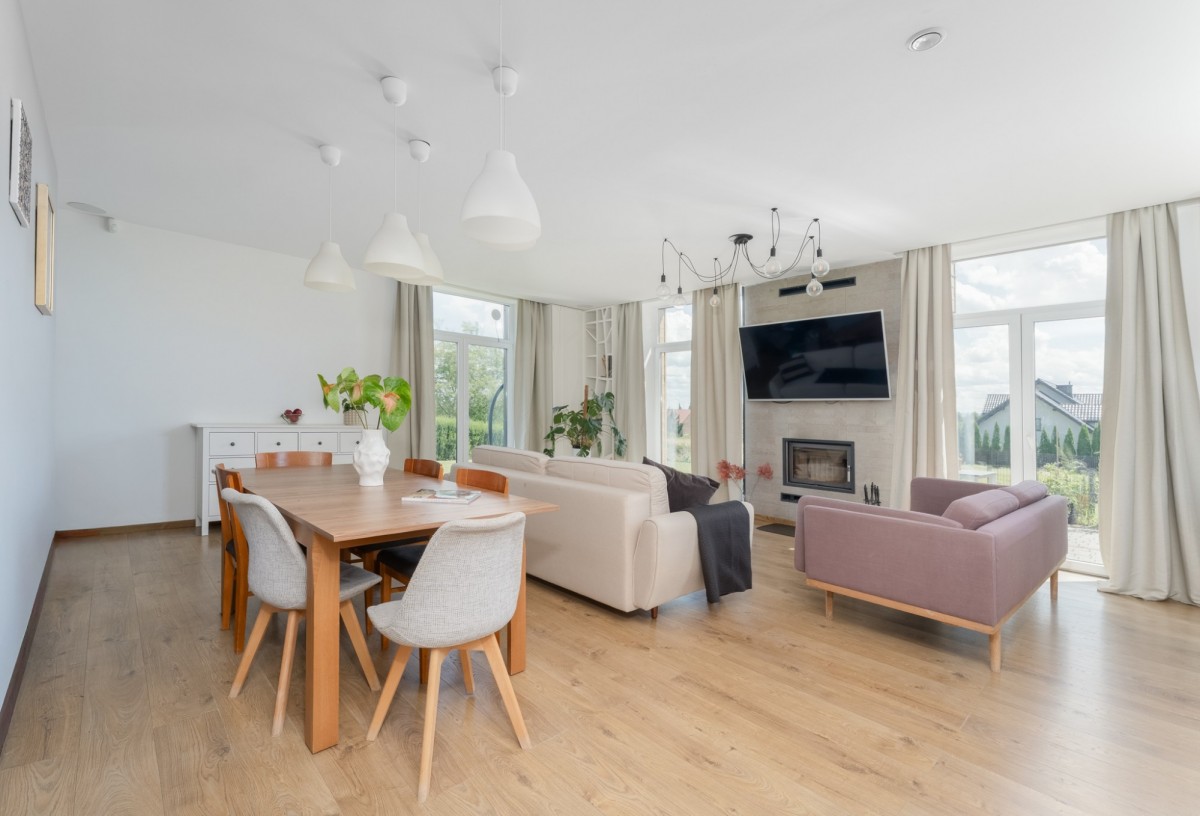 • komfortowy salon (kominek) z jadalnią z wyjściem na taras i ogród