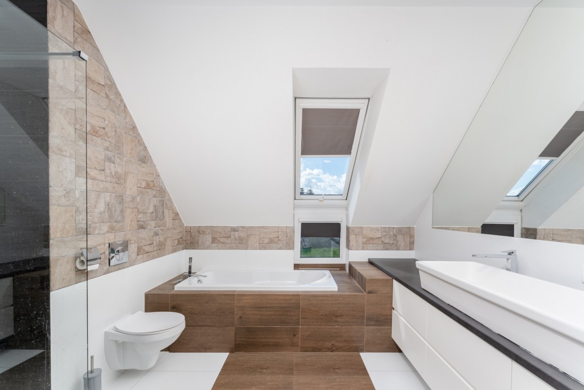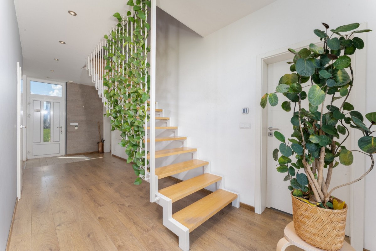 Dom o powierzchni całkowitej 224,82 m² składa się z 5 pokoi, kuchni, salonu z jadalnią, pomieszczenia gospodarczego/ garderoby, spiżarni, pralni, 3 łazienek oraz 1 toalety.