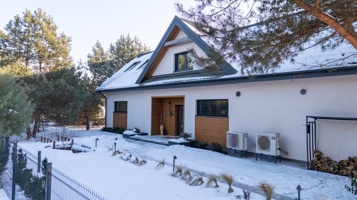 • Dom energooszczędny, niemal samowystarczalny - ogrzewanie podłogowe współpracujące z pompą ciepła, fotowoltaiką, magazynem energii i rekuperacją
