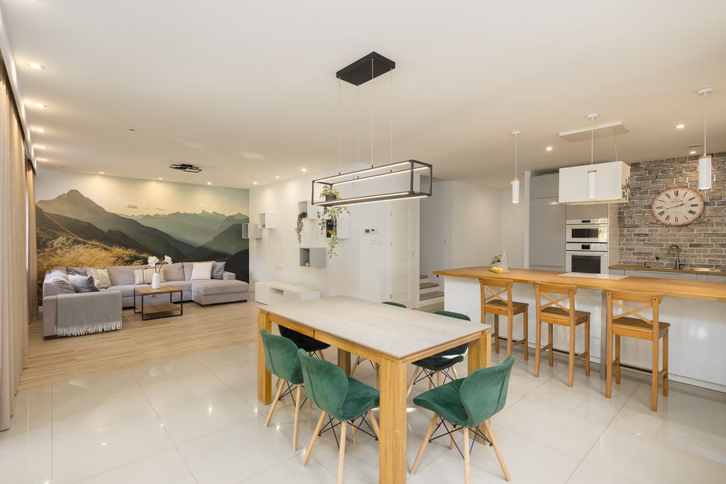 Dom jest gotowy do zamieszkania, a jednocześnie pozostawia możliwość własnej aranżacji w niektórych pomieszczeniach. Część wnętrz została świeżo odmalowana. Projekt wnętrza został przygotowany z myślą o funkcjonalności, a zastosowane materiały gwarantują trwałość i wygodę użytkowania.