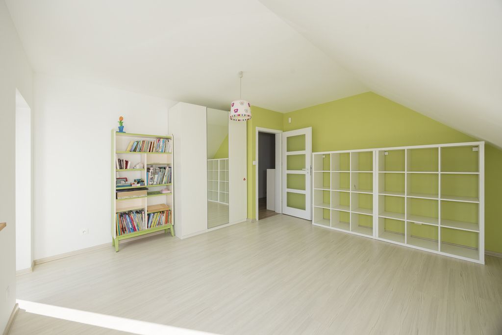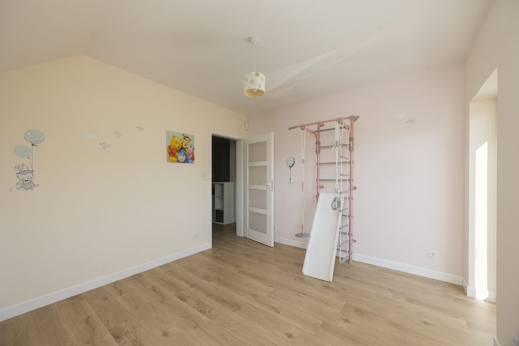 Strefa prywatna obejmuje główną sypialnię z garderobą, dwa pokoje dziecięce oraz dodatkowy pokój, który można przeznaczyć na gabinet, pokój gościnny lub inne cele według potrzeb mieszkańców.
