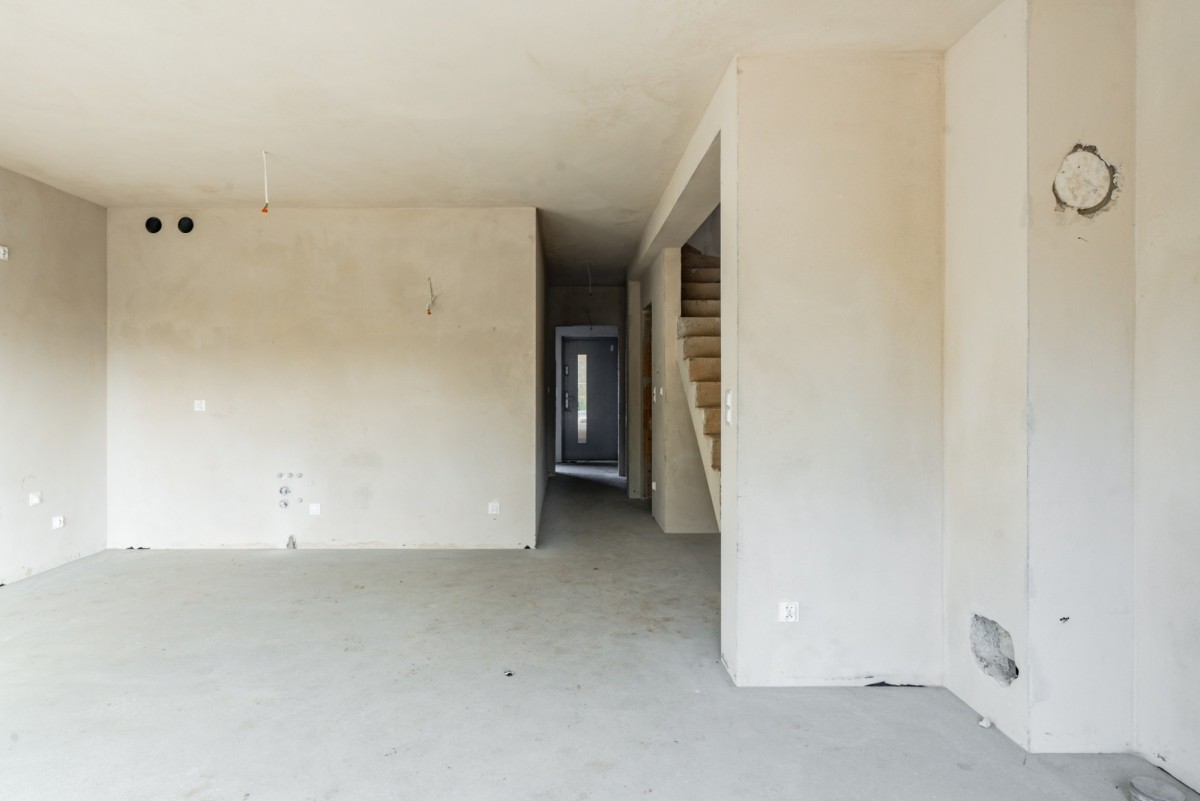 Parter składa się z przestronnego salonu (29,7m2) z aneksem kuchennym oraz kominkiem, łazienki z prysznicem (2,2m2), wiatrołapu oraz garażu. Na piętrze znajdują się 4 pokoje, łazienka z wanną (5,3m2) oraz pomieszczenie gospodarcze. Do dyspozycji dostępne z klatki schodowej przestronne i wysokie poddasze zbudowane na stropie żelbetowym, wolna przestrzeń bez kominów i podpór, o powierzchni całkowitej 64 m2 oraz użytkowej 36,5m2.