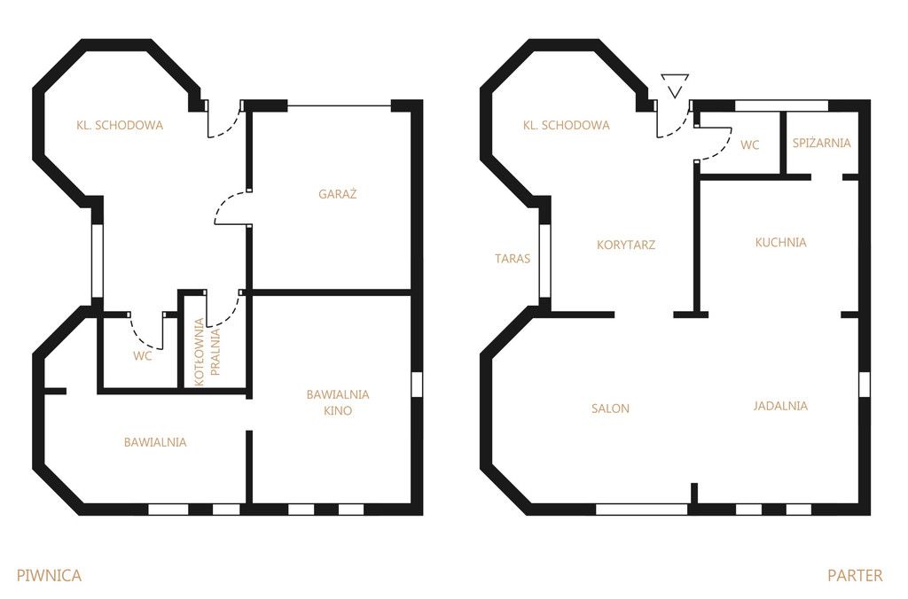 pokój filmowy, pokój dziecięcy, łazienka z prysznicem i toaletą, kotłownia i pralnia (pralka suszarka), serwerownia z tablicą rozdzielczą, garaż